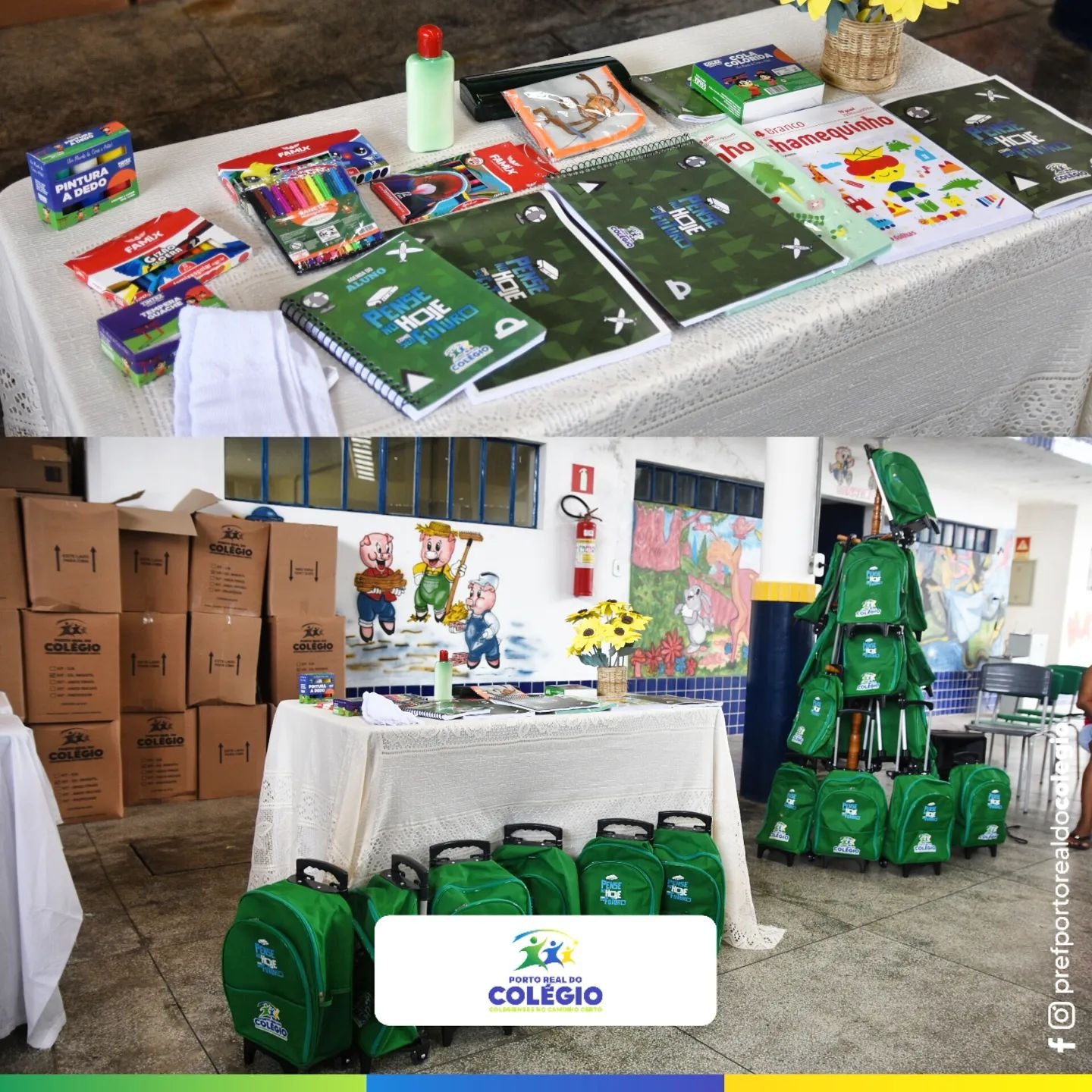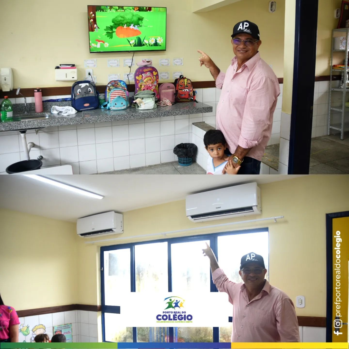 Durante as entregas para os alunos da zona rural, o prefeito Aldo Popular anunciou a reforma da Escola Municipal Dep. José de Oliveira Costa, situada no Salomezinho. Em seguida, na Creche, visitou as salas climatizadas, que contam com TVs de led que auxiliam no aprendizado.