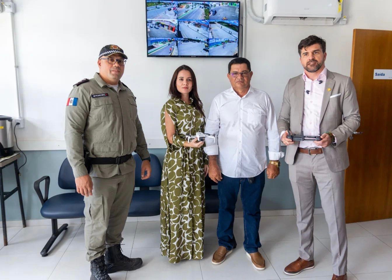 Além do sistema de vídeo, também foi adquirido um drone, que auxiliará no trabalho dos agentes na prevenção de crimes, no policiamento ostensivo e em investigações da polícia civil. Ambos equipamentos foram obtidos por meio de não persecução penal, intermediado pelo Ministério Público, representado pela promotora de Justiça, Ariadne Dantas, com aval e decisão do Juiz, Caio de Melo Evangelista.